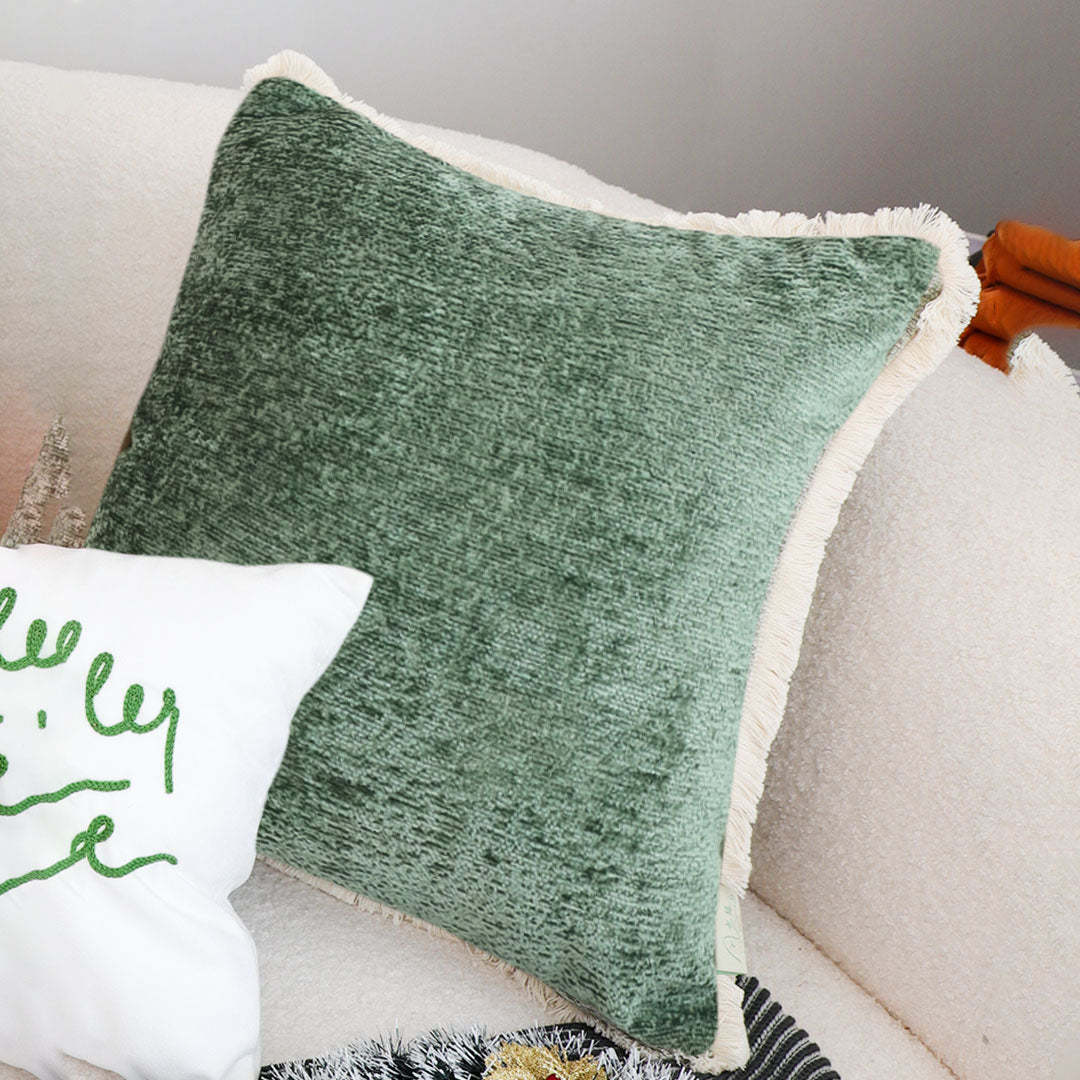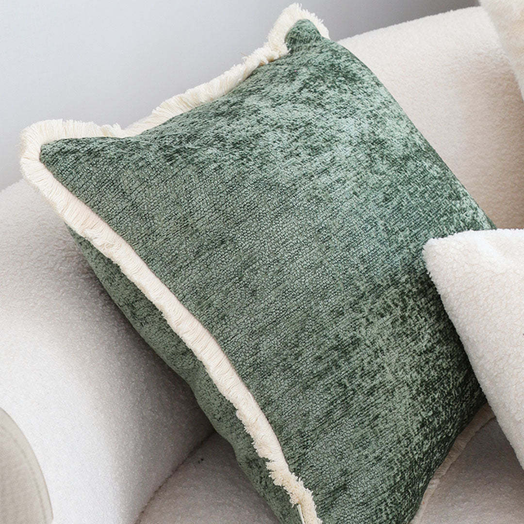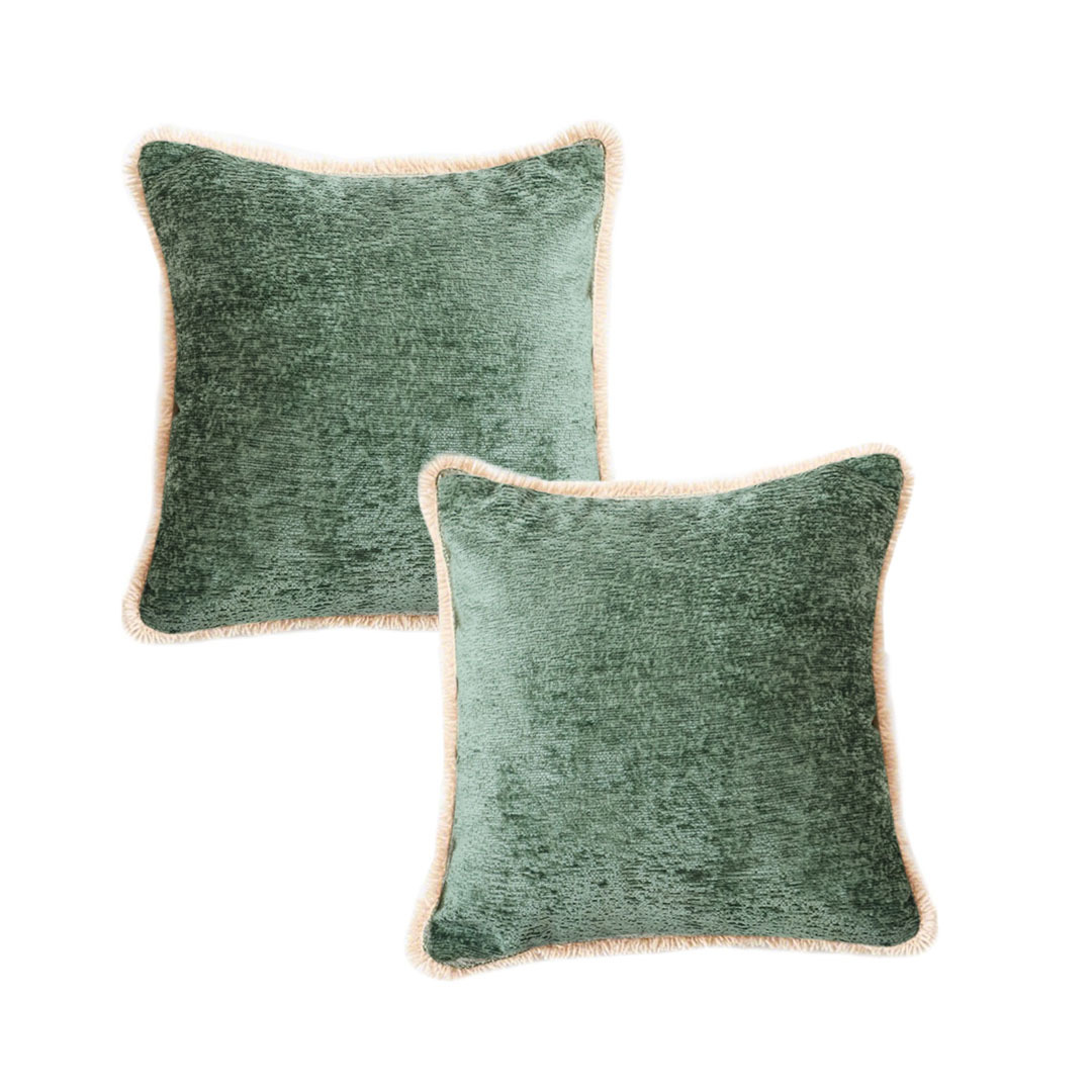 Add luxurious comfort to your home with this bundle of 2 soft chenille pillow covers (no inserts). Featuring rich emerald green, textured fabric with fringed edges, they bring elegant coziness to your sofa, bed, or reading nook.