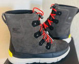 SOREL Kids' Explorer Waterproof Insulated Boot, Size 7, Black/Gray/Red, NWT