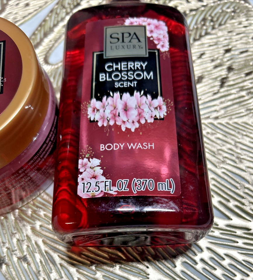 - SPA Luxury Cherry Blossom Scent Body Wash 12.5fl/370ml & Body Scrub 8oz New