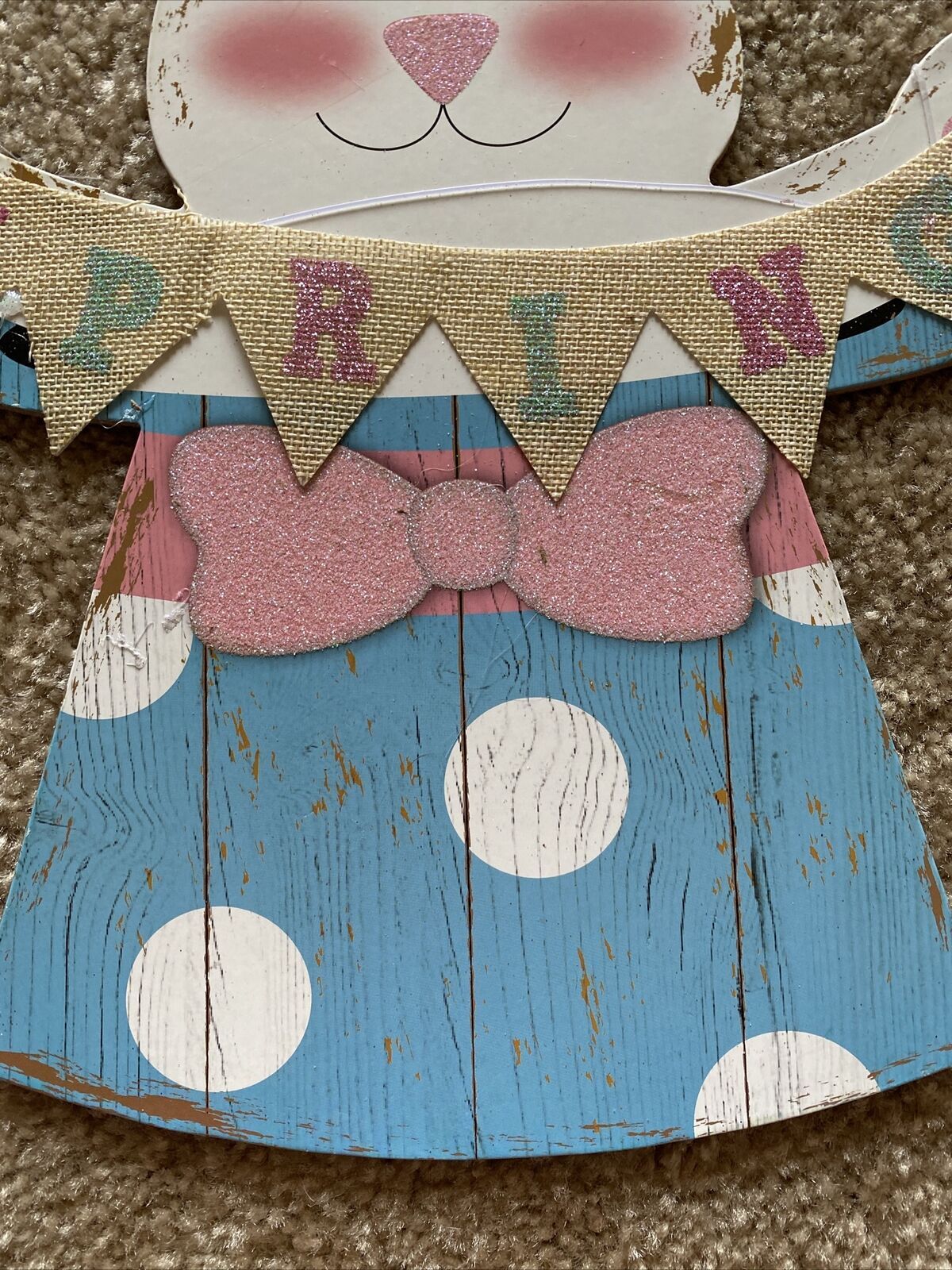 SPRING Colorful Wood Hanging Bunny Wall Sign 11" x 15" Easter Decor New. Condition is "New". Shipped with USPS Media Mail (2 to 8 business days). #5131