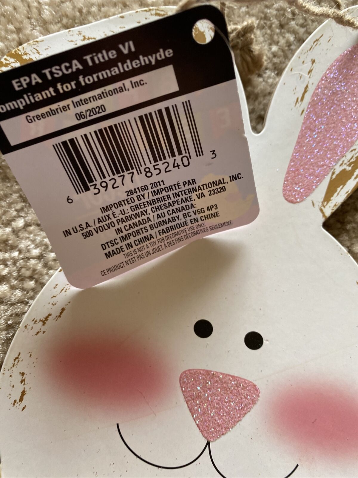 SPRING Colorful Wood Hanging Bunny Wall Sign 11" x 15" Easter Decor New