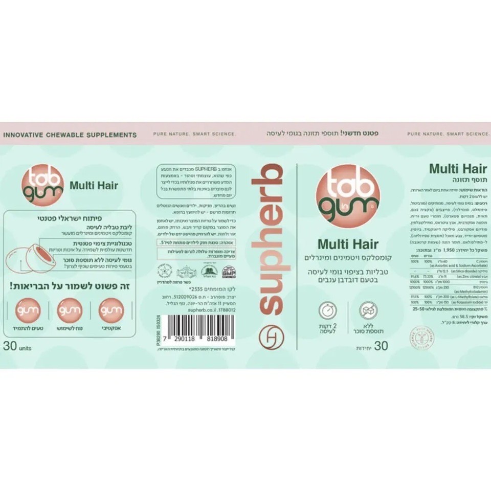 SUPHERB- MULTI HAIR vitamin and mineral complex with grape cherry flavor 30 unit