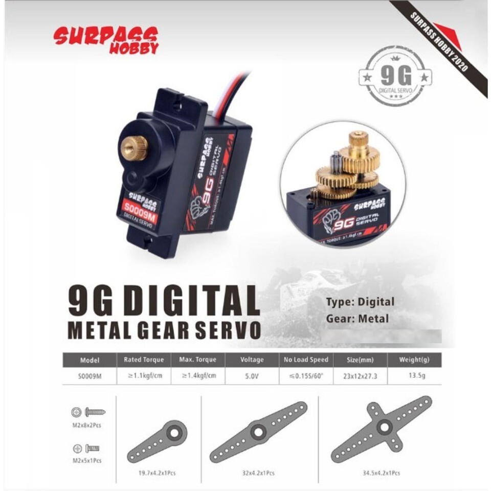 SURPASS Hobby S0009M 9g Metal Gear 1.4KG Digital Servo for RC Fixed-Wing Airplane Robot Car Boat Duct Plane 1/24