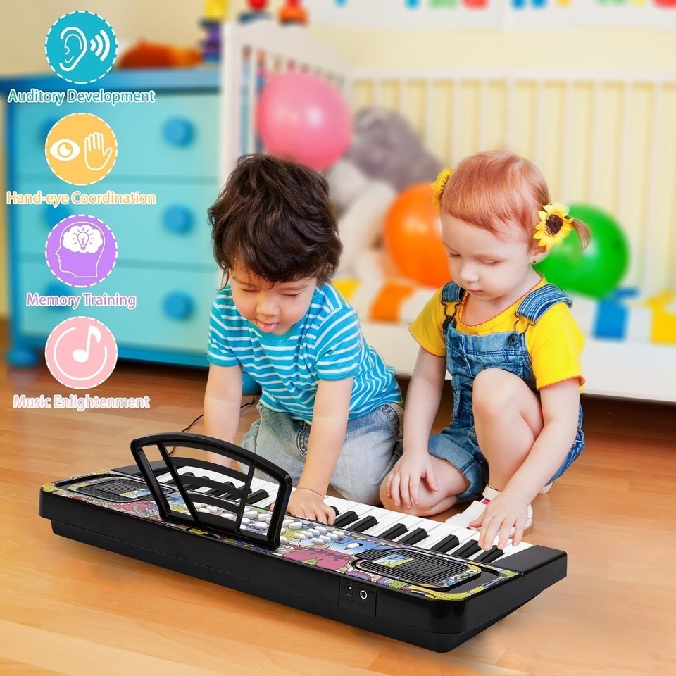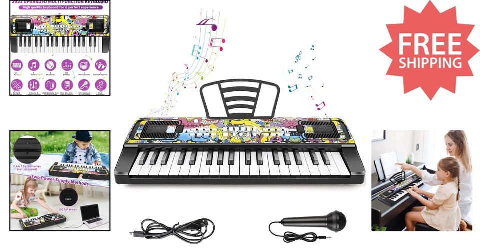 Discover the ultimate musical companion for children with our 2023 Upgraded 37-Key Piano, featuring vibrant cartoon patterns and a suite of engaging functions including microphone playback, recording, and multiple sound effects. Equipped with dual stereo speakers and two powered methods?battery or USB?this portable keyboard invites indoor and outdoor musical play. Crafted from eco-friendly, durable materials with smooth edges, it ensures safety and comfort for young learners. Perfect as a gift for kids aged 3-8, fostering creativity, coordination, and a love for music. To ensure fast and reliable delivery, we work with multiple fulfillment partners and suppliers. Depending on availability and location, your order may ship from different warehouses or arrive in packaging that varies from item to item. Tracking details are typically provided shortly after shipment, and customer satisfaction remains our top priority. Please note that due to carrier policies and regional regulations, certain items may not be eligible for delivery to specific states or territories.