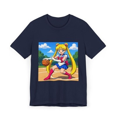 Channel the playful, confident energy of a court legend with this lightweight jersey tee. The design?imagine a moonlit sailor spinning down the hardwood?brings anime whimsy to every dribble, crossover, and buzzer-beater. Soft, breathable cotton sits close to the body without restricting movement, so you can layer it under a hoodie for streetwear looks or wear it solo during pick-up games. The subtle athletic vibe pairs with everyday life: commuter rides, late-night gym sessions, or hanging out with friends before the next match. It feels like the instant you find your rhythm?bright, focused, and a little bit magical.