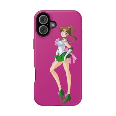 A Sailor Moon - Sailor Jupiter pink phone case that provides both style and protection for your phone. Perfect for fans of Sailor Moon, this impact-resistant case features vibrant colors and a glossy or matte surface option. With interior magnets for MagSafe compatibility, this phone case is durable, flexible, and designed to protect your phone from scratches and bumps. Ideal for adults and suitable for new iPhone 17 series models.