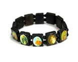 - SAINT BEAD BRACELET Black Wood Stretch Religious Catholic Icon Jesus Angel Mary