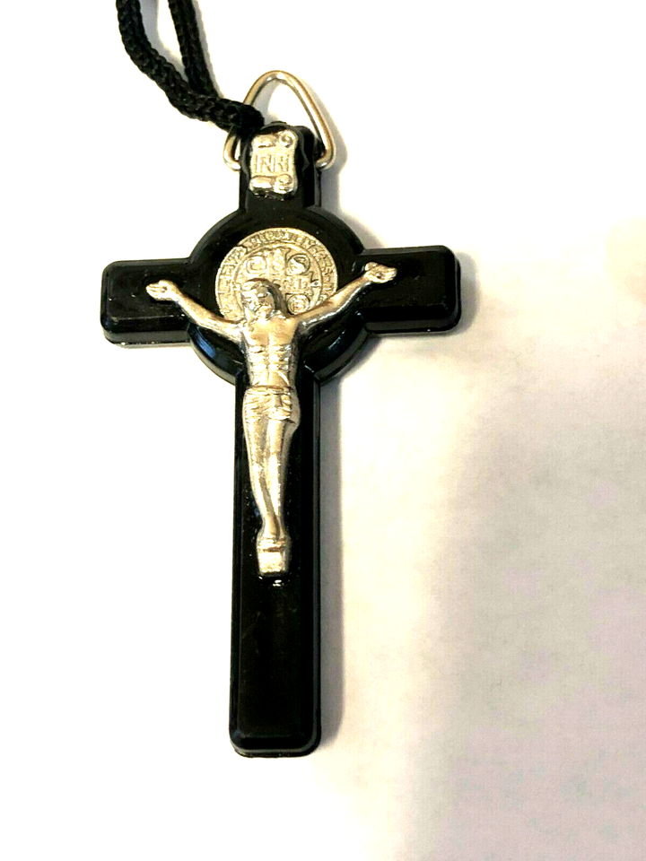 Your purchase is for a Saint Benedict Crucifix Pendant. It comes in a 2.50" zinc-alloy crucifix with a 22" black cord. See pictures for details.