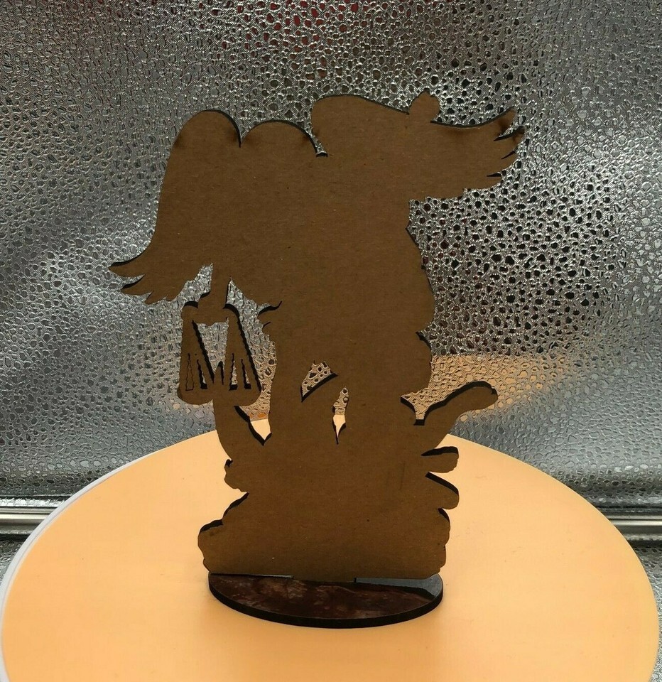 You are purchasing a beautiful colorful laser image of Saint Michael the Archangel set on thin wood cut out statue. It measures approximately 6" H and the base measures approximately 2.60". Bring this strong defender, Our Warrior Saint to your home as a reminder that He is always there to fight the evil and protect you. This is a perfect gift for a child's bedroom or a small space where a full size resin statue can't be placed. See pictures for details. It come in a cellophane package.