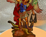 Saint Michael The Archangel 6" Laser Image on Thin Wood Statue, New #AB-33