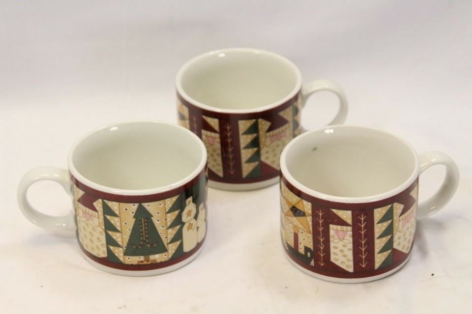 Sakura Christmas Patch Plates Cups Crop Platter Lot of 8 Xmas
