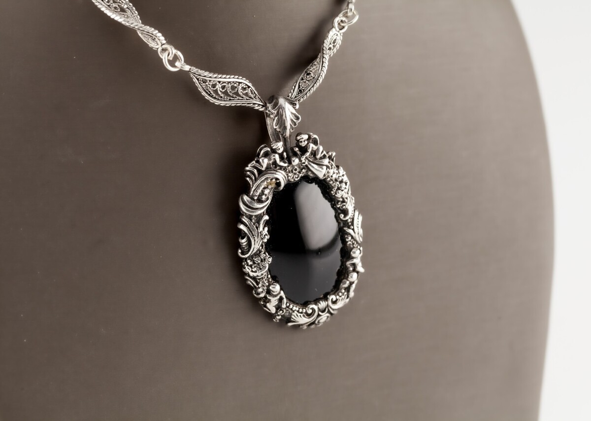 Verfügt über einen Onyx-Singlet-Anhanger in kunstvoller Fassung mit wunderschoner Helix-Kette