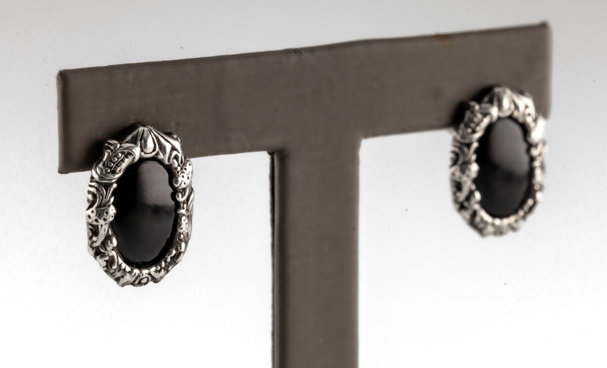 Sally C Sterling Silber Und Onyx Aufwendig Anhanger Und Ohrring Set