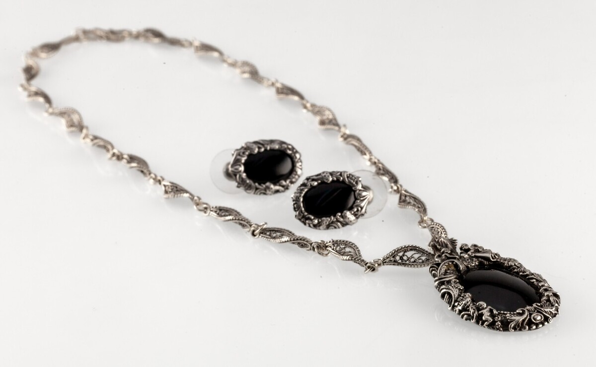 Wunderschones Schmuckset aus Sterlingsilber und Onyx