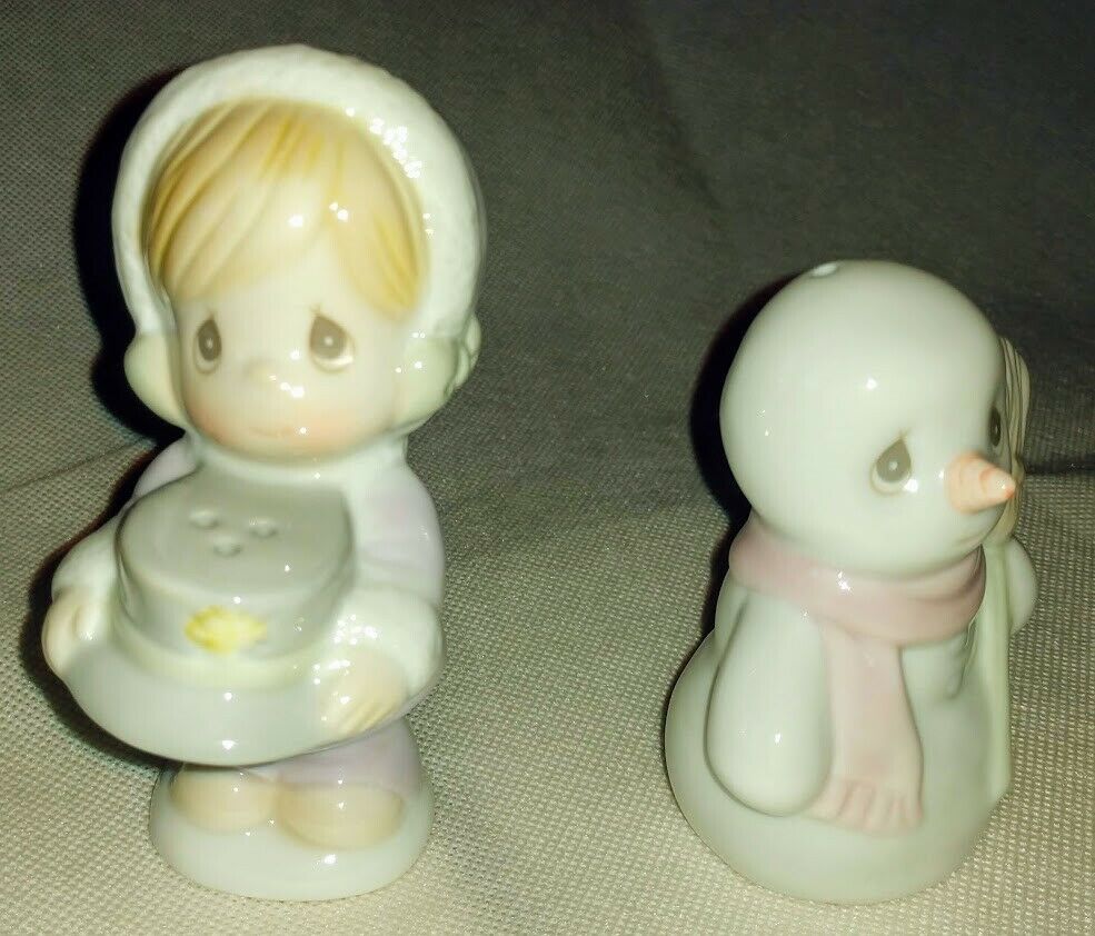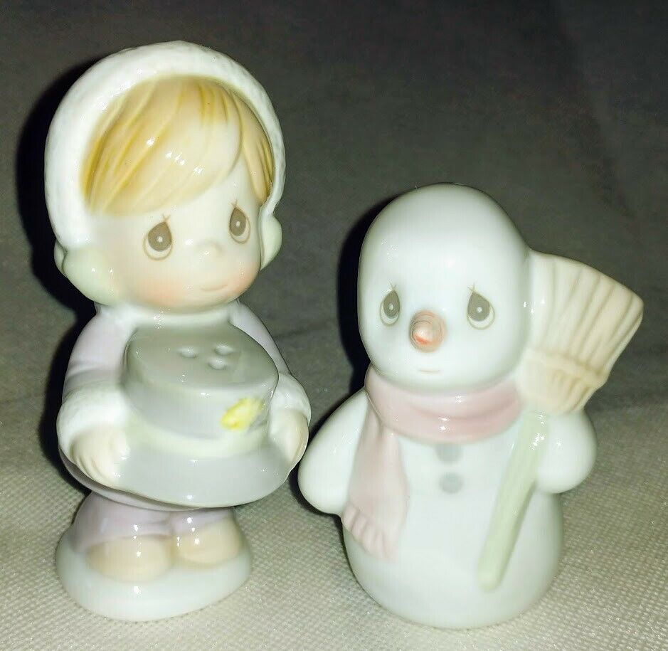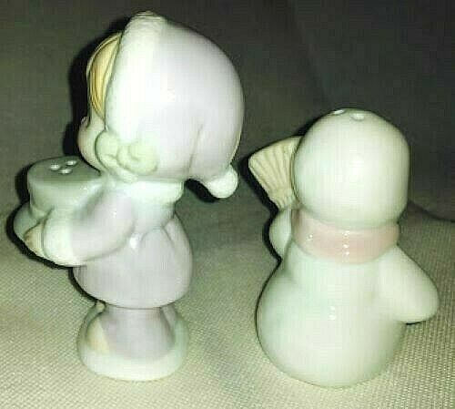 - Salt & Pepper Shaker Set Christmas Snowman & Girl Table Décor Precious Moments