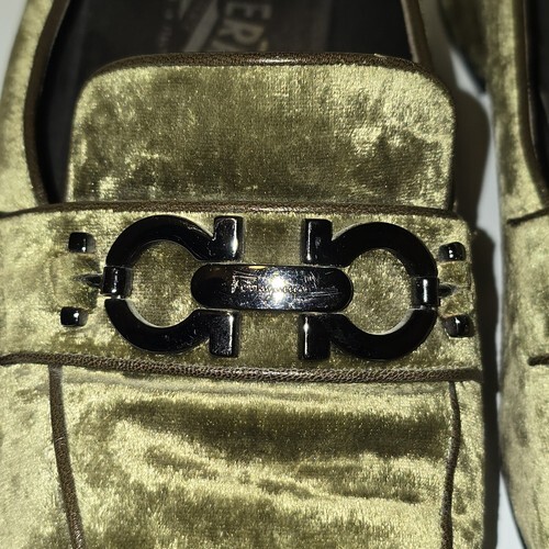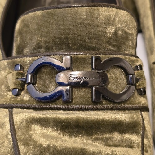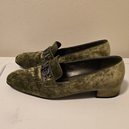 - Salvatore Ferragamo Green Velvet Horsebit Loafers / Shoes Italy Womens 9.5 READ