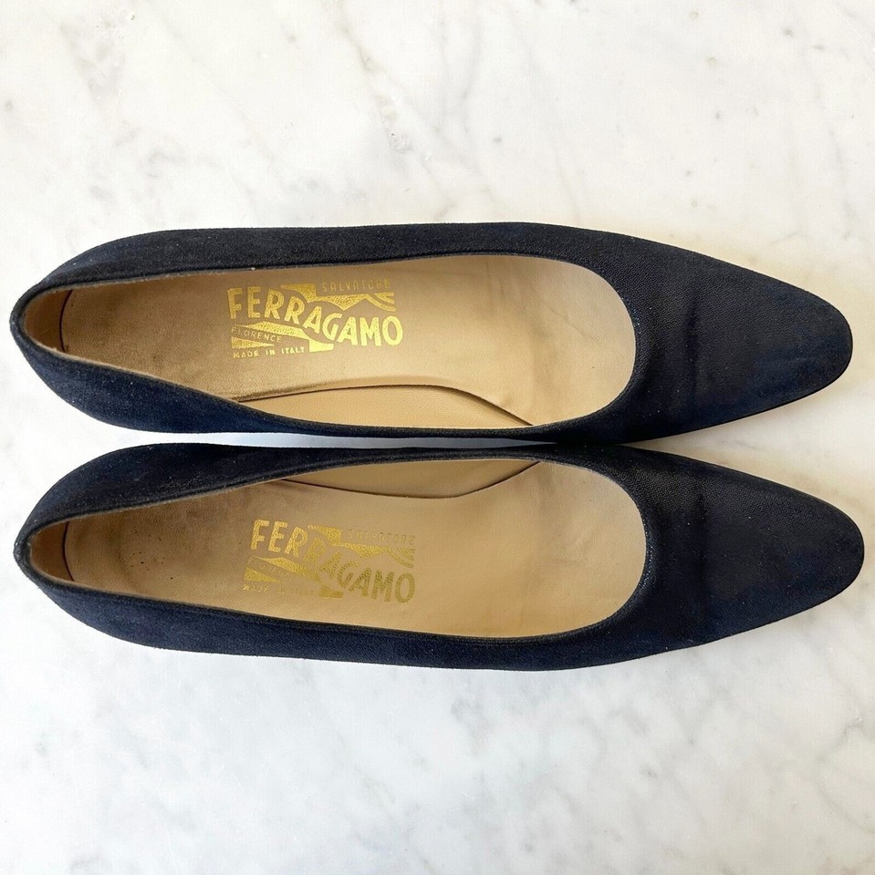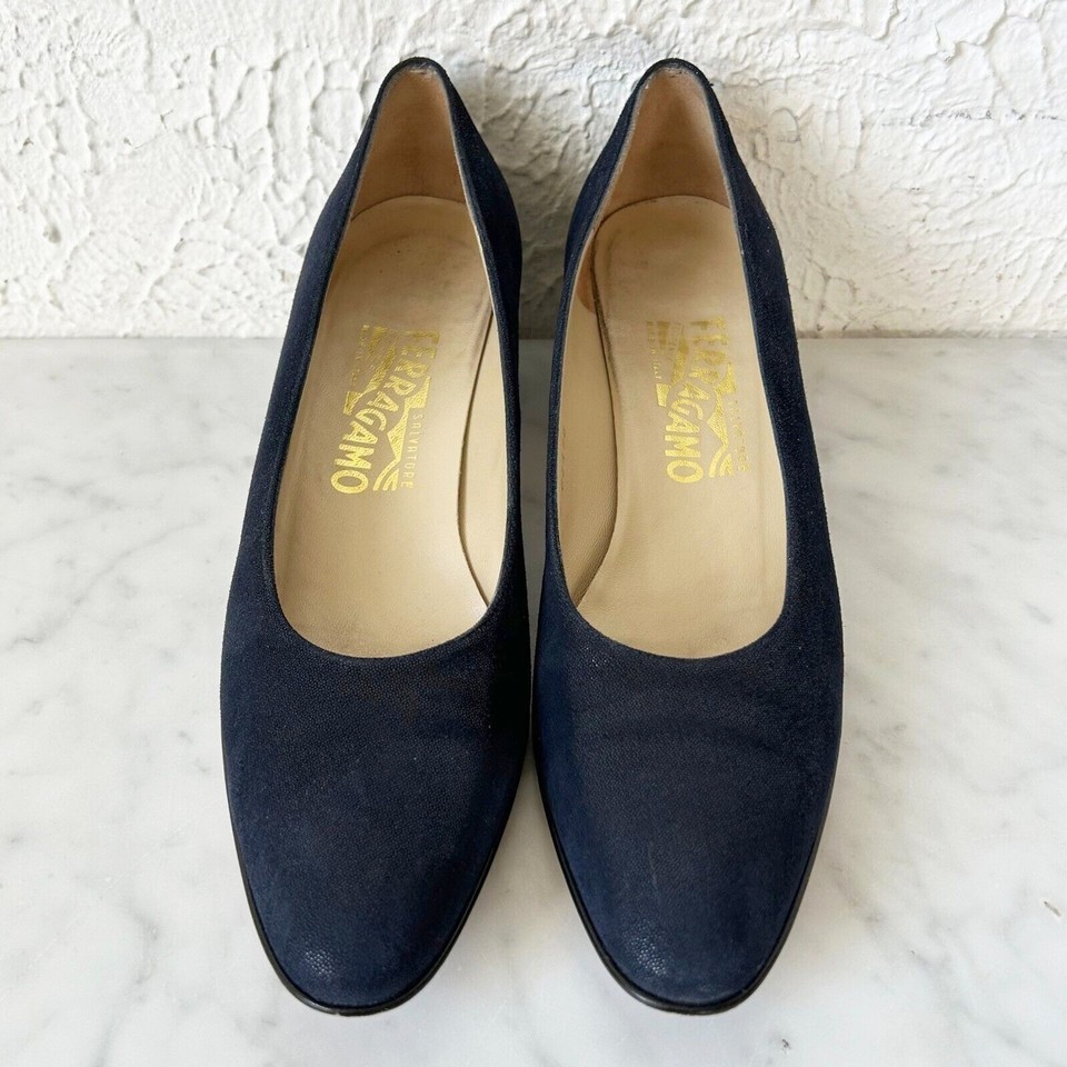 - Salvatore Ferragamo Pebbled Suede Pumps Dark Blue Dublino in Box - Size 9.5AAAA
