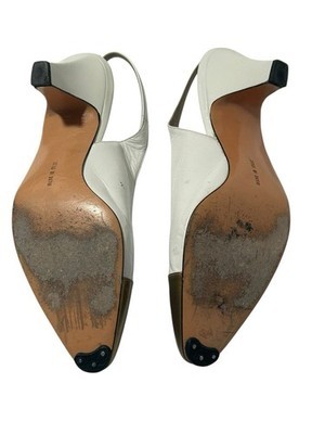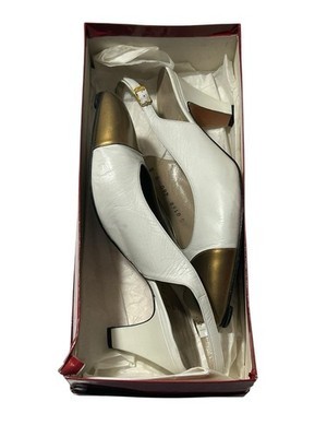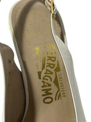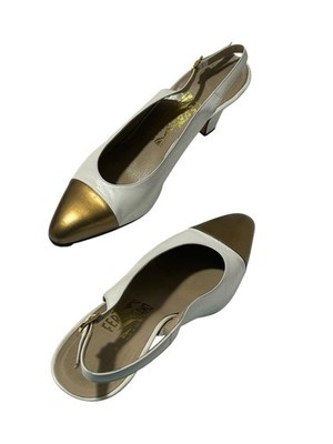 - Salvatore Ferragamo Slingback Heel Low Pumps Cap Toe Beige Copper Leather Sz 9 B