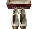 Salvatore Ferragamo Slingback Heel Low Pumps Cap Toe Beige Copper Leather Sz 9 B with Original Box!