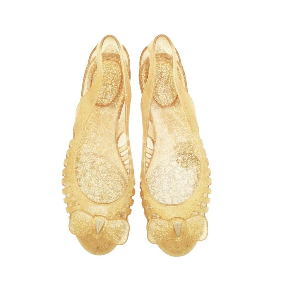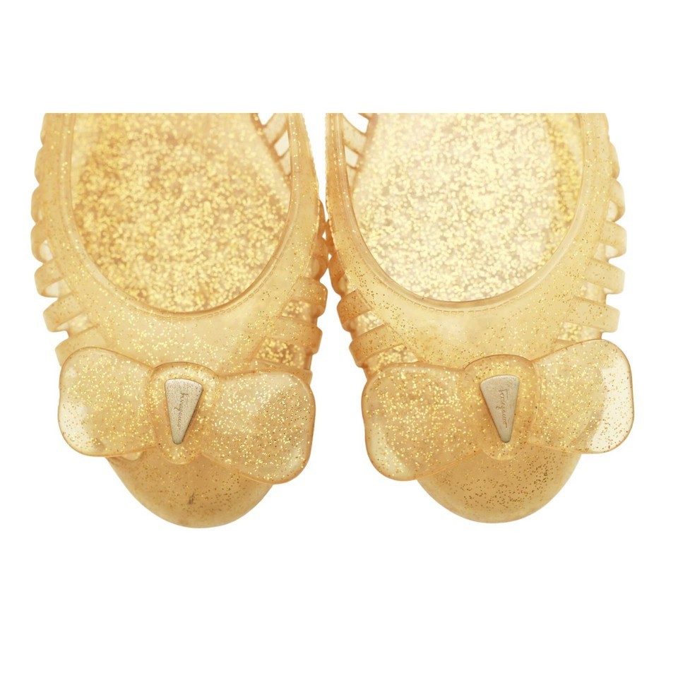 - Salvatore Ferragamo Spiffy Yellow Glittery Bow Jelly Shoes Transparent size 10