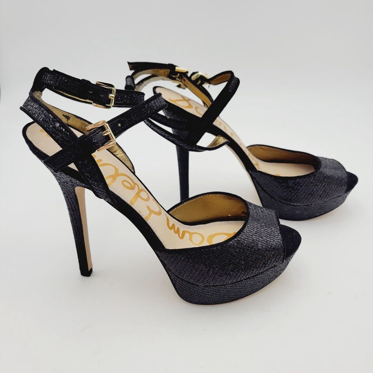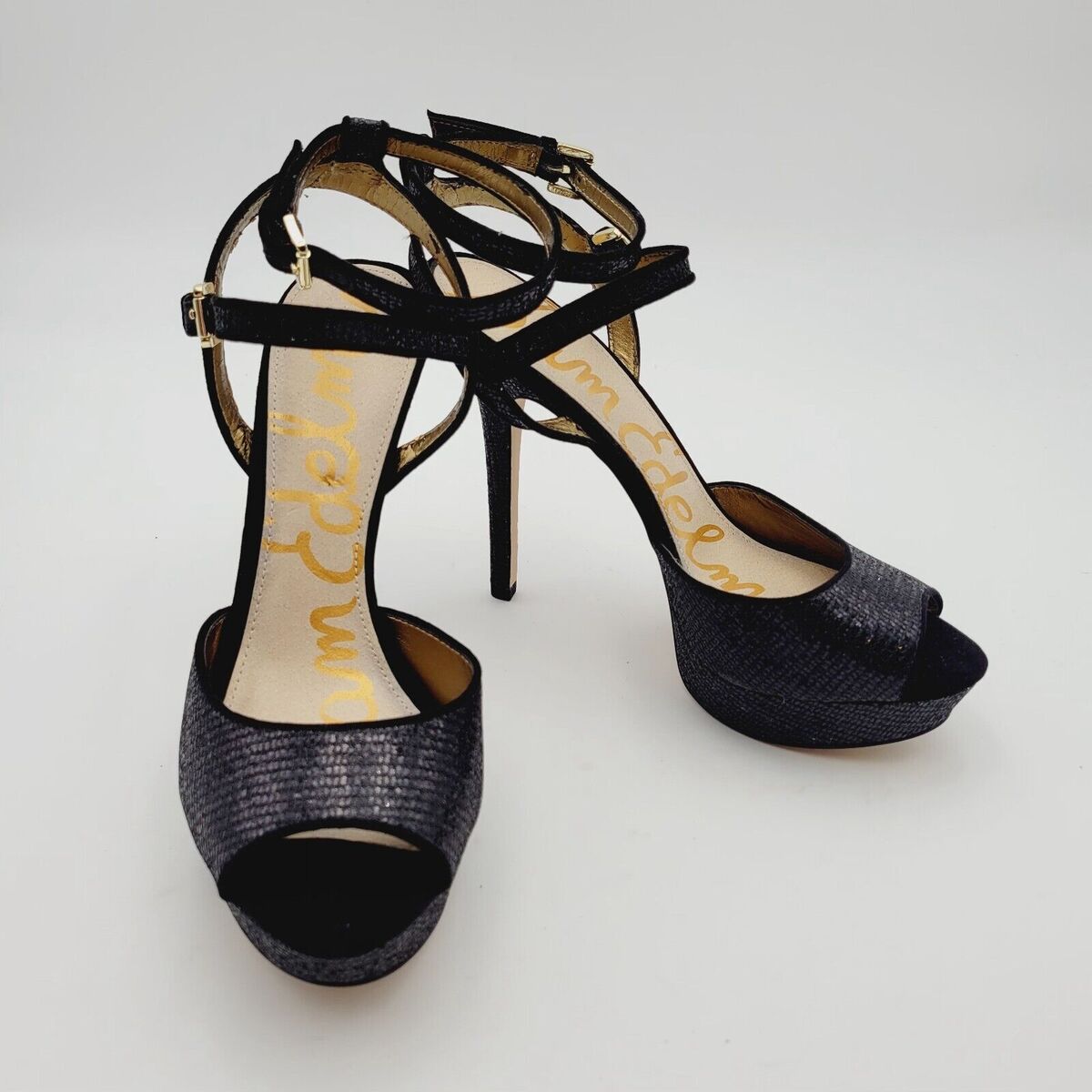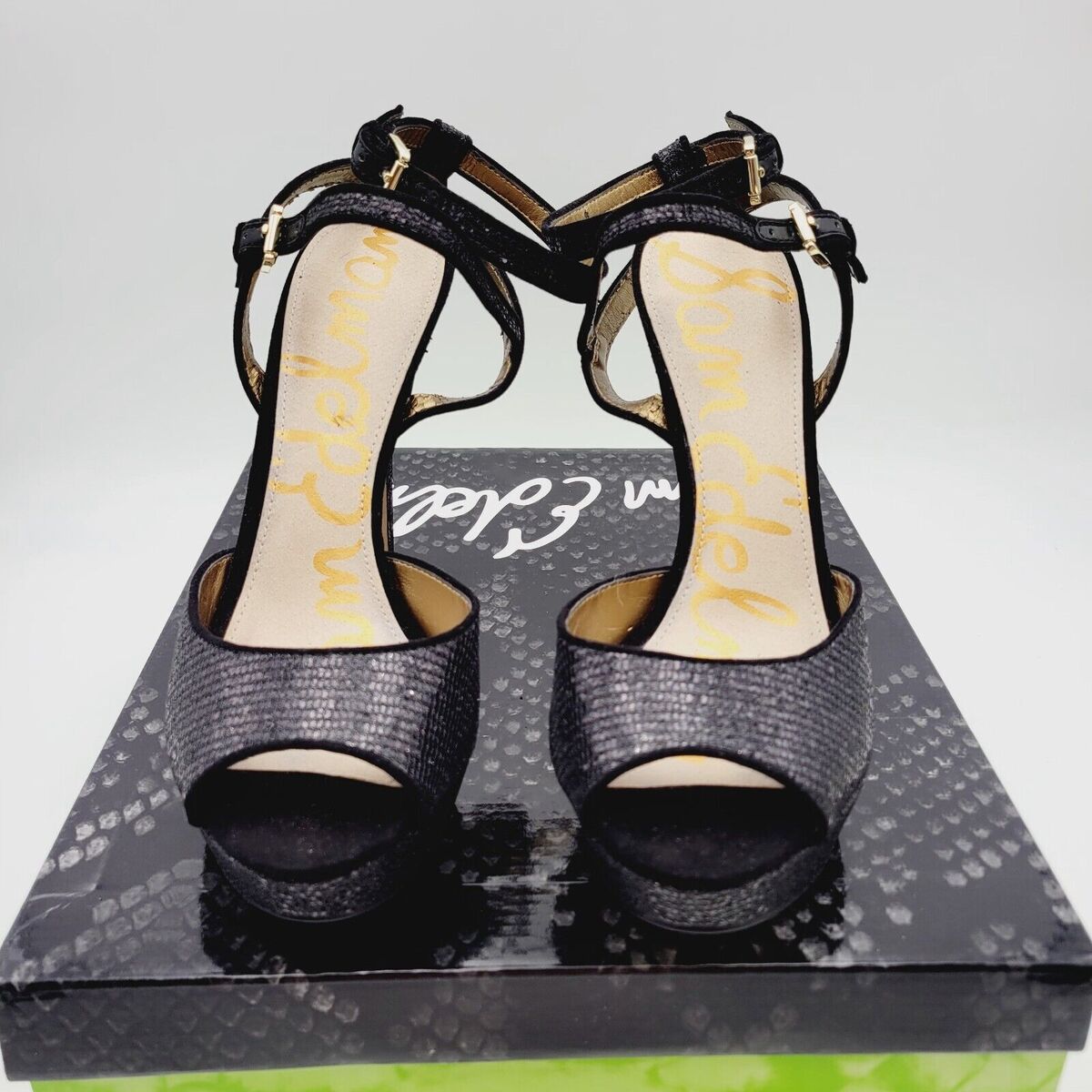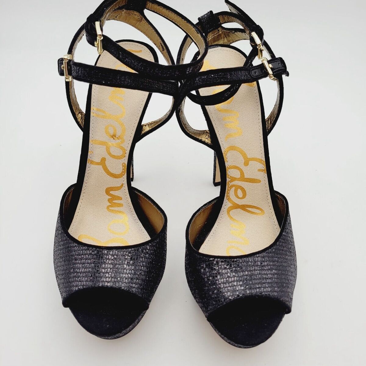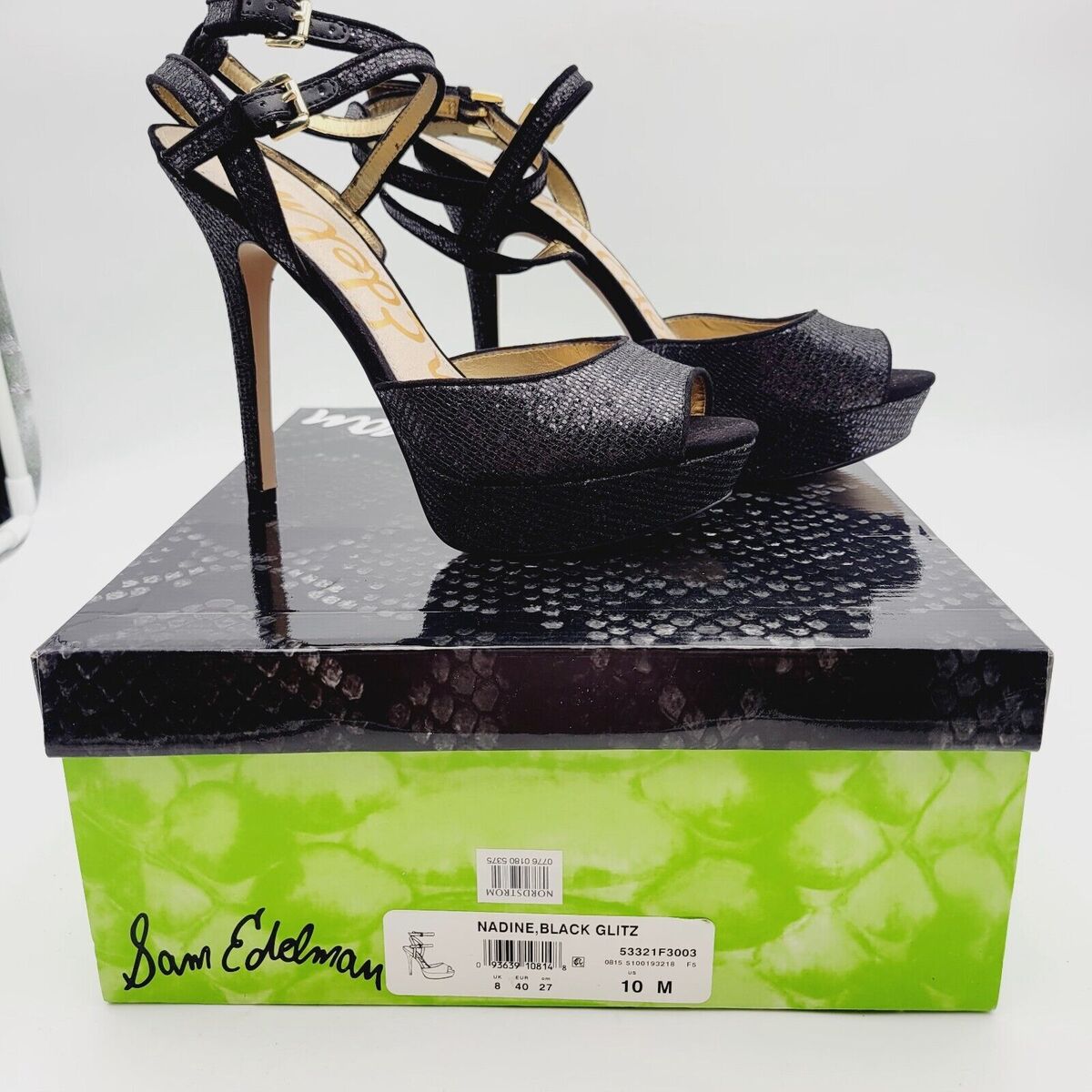 - Sam Edelman 8.5 Nadine Heels Black Glitz Open Toe Platform Shoes Stiletto .