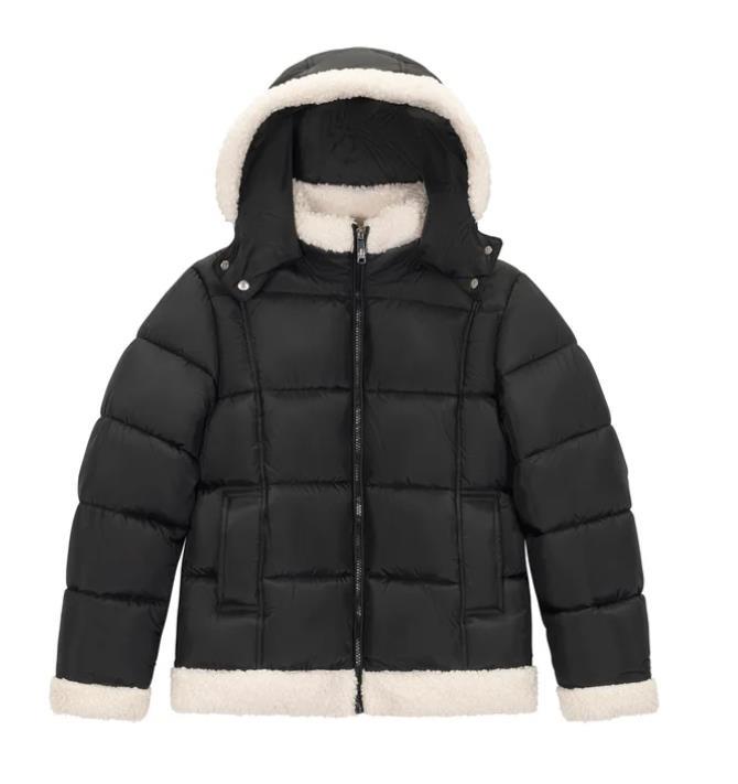 - Sam Edelman Boys Girls Jacket Black Puffer Full-Zip Pockets Faux Fur Trim Winter