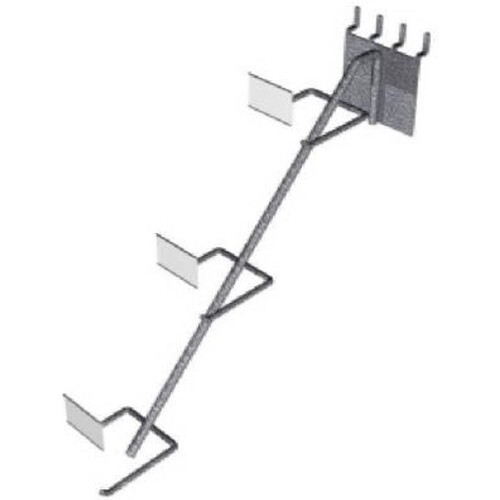 Pot pan angled down design peg hook display rack is constructed with durable materials and a powder coated black finish delivering long lasting use. Features a 3 tiered design allowing for ample hanging space. Designed for use with pegboard, slatwall and slatwall grid.