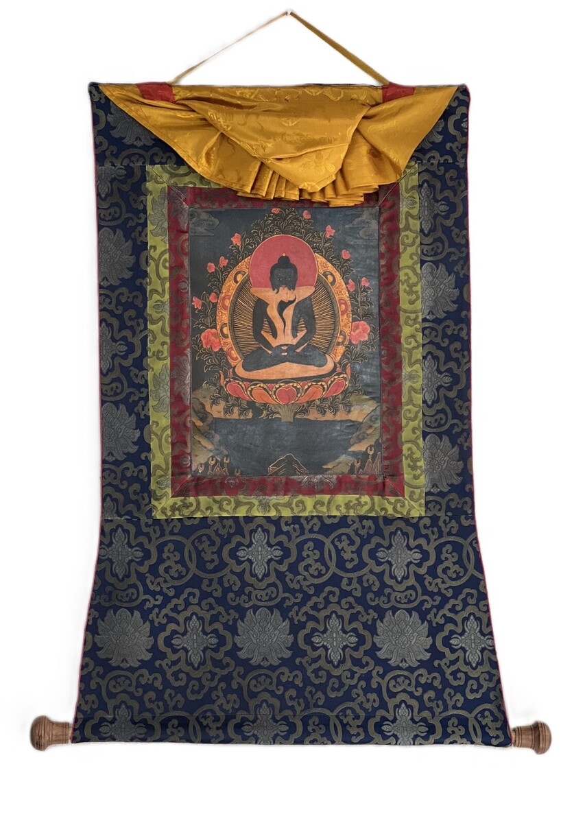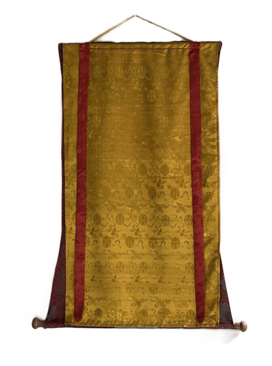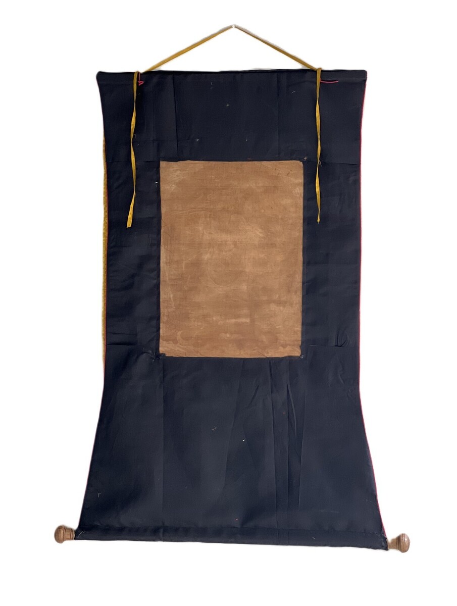 This thangka is more than a painting; it is a portal to the spiritual realm, inviting you to explore the profound depths of Buddhist philosophy and meditation. Embrace the authenticity and vibrancy of this original masterpiece, complemented by a luxurious silk brocade that enhances its timeless allure.