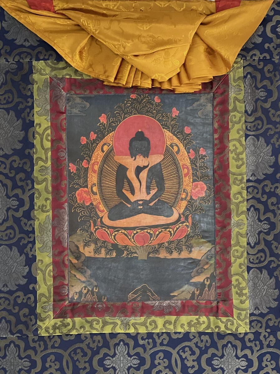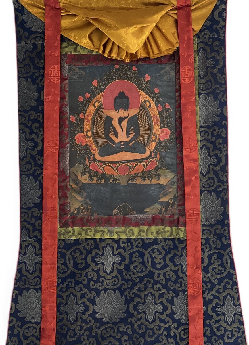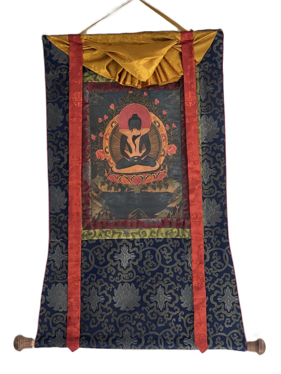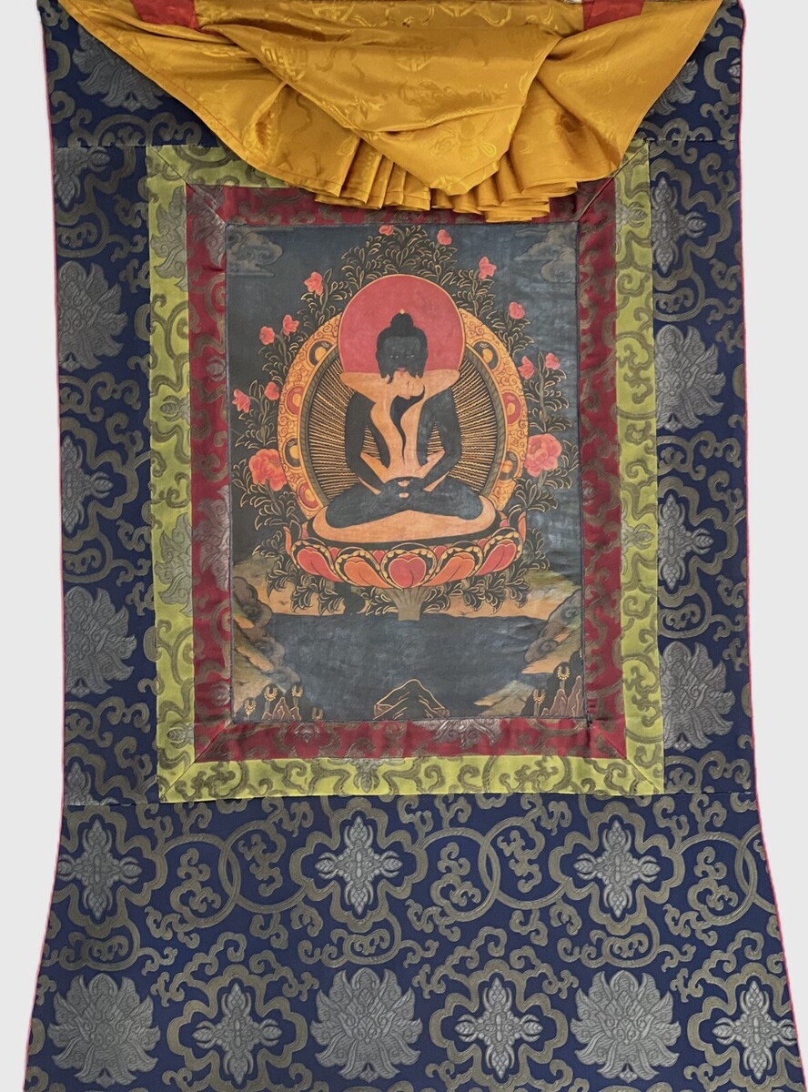 thangka, framed with silk brocade, is a true masterpiece that goes beyond mere