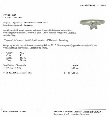 Samuels Platin -Prinzessin Cut Diamond Solitaire Engagement Ring