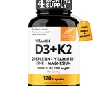 Sandhu's Vitamin D3 K2 Magnesium 5000 IU, 120mcg K2 Capsules 120 Count (Pack of 1) | with VIT B6, Zinc Quercetin | D3K2 Supports Superior Absorption, Energy, Immune, Muscle Health for Men Women
