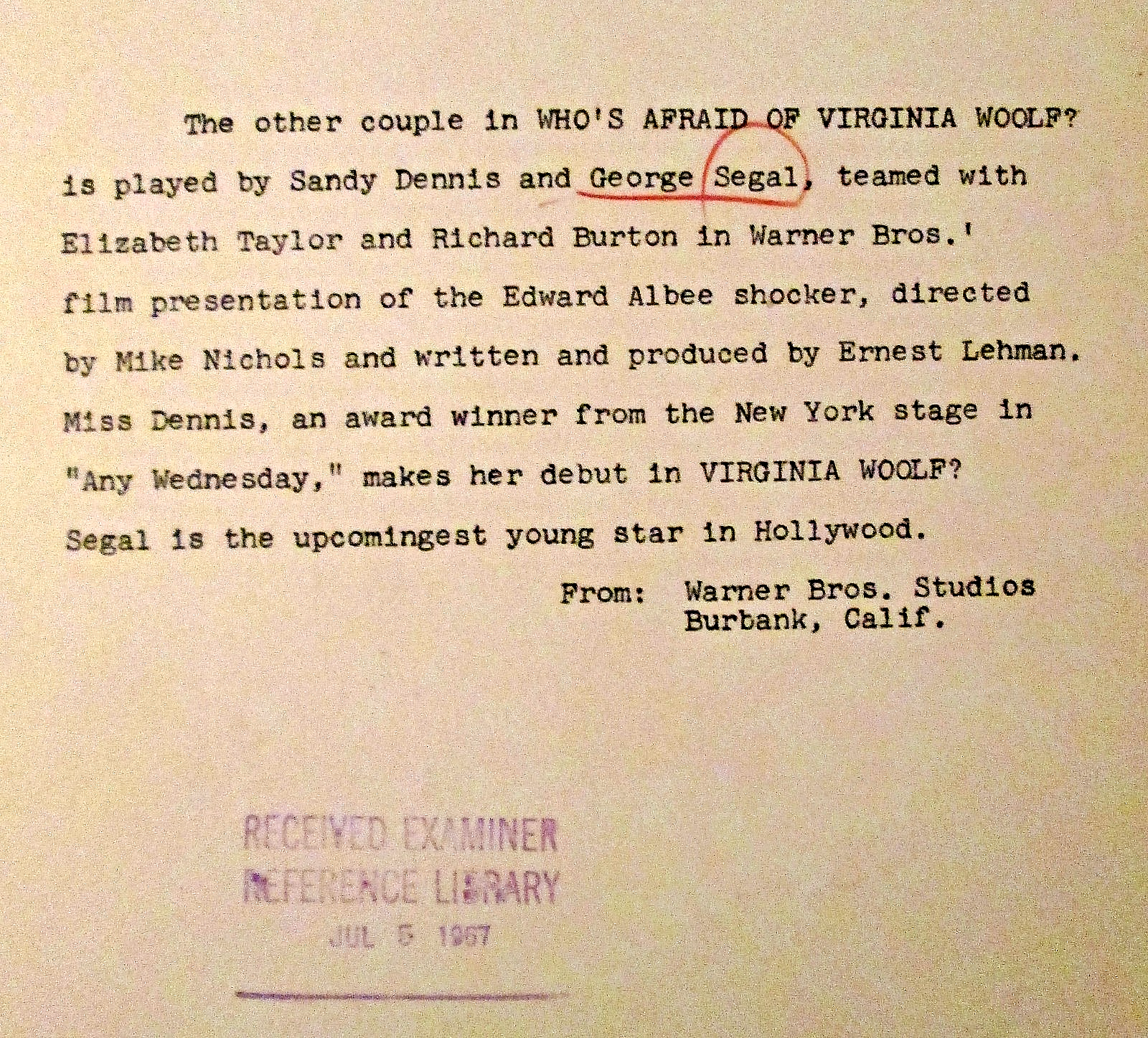 - SANDY DENNIS,GEORGE SEGAL (WHO,S AFRAID OF VIRGINA WOOLF ?) PUBLICTY PHOTO