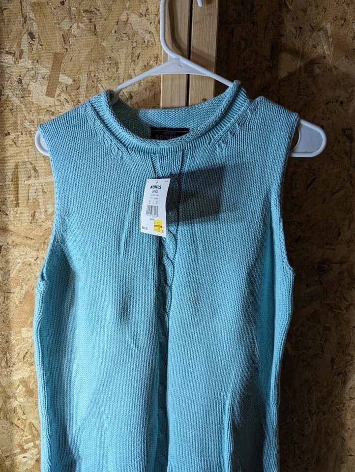 - Sanoma large kadies cotton sleeveless turquoise knit sweater