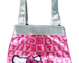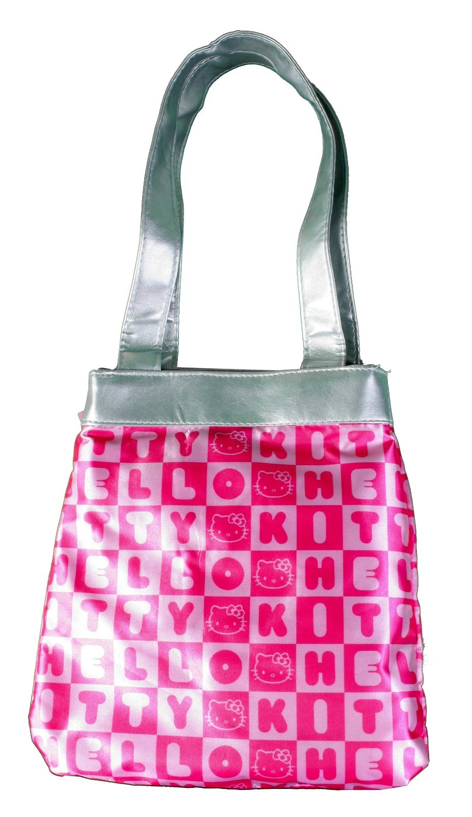 Hello Kitty Pink Silver Jacquard Tote Shoulder BagHello Kitty bag with pink jacquard pattern all over and silver shoulder straps.