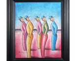Sans Titre (Cinq Hommes Face Gauche) Par B. Long Signée Abstrait Acrylique