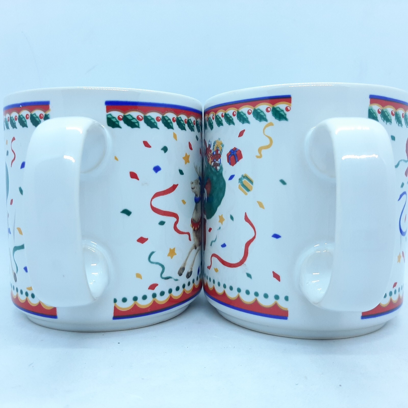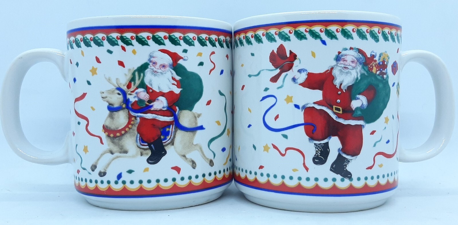 - Santa Clause riding Reindeer Mugs by Vitromaster ~ Lot of 2