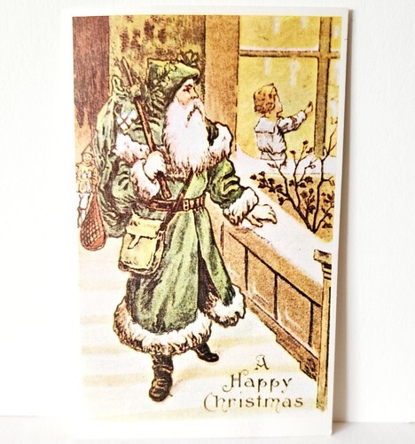 - Santa Green Suit Happy Christmas Postcard Hong Kong Print Vintage Toy Bag PCBG6B