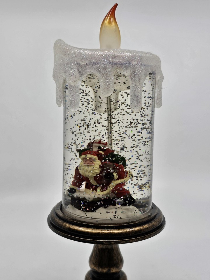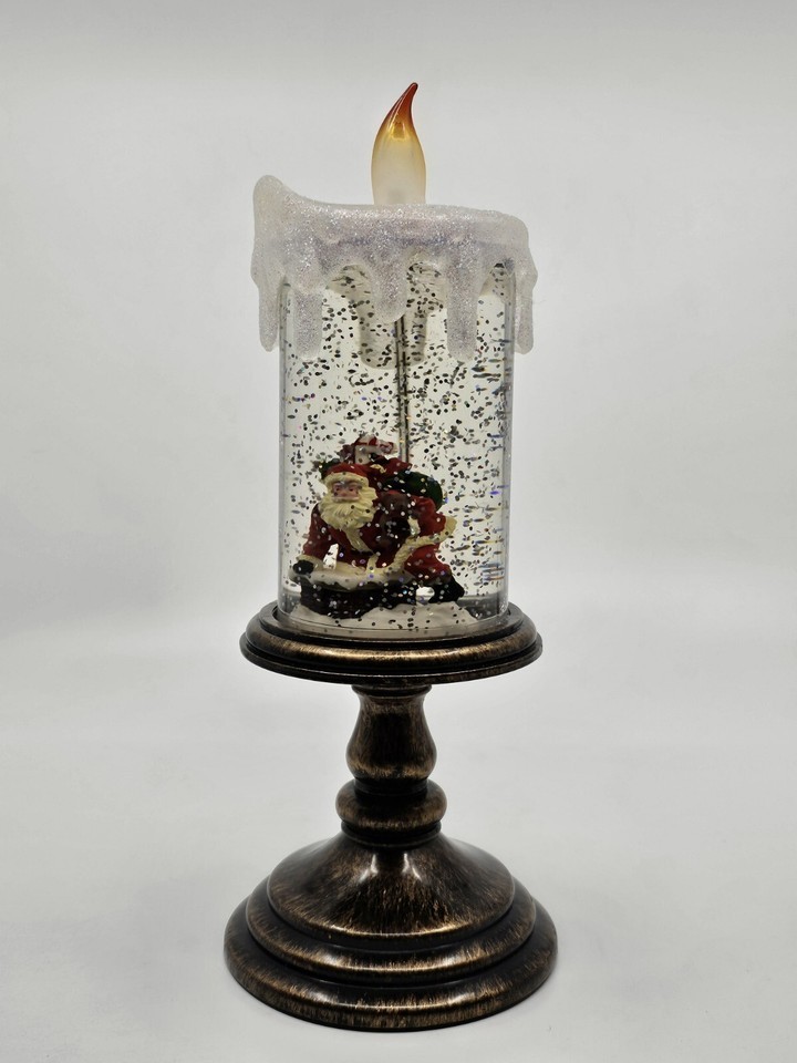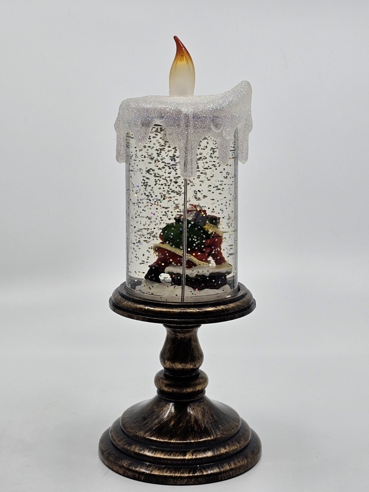 - Santa LED Lighted Christmas Holiday Candle Snow Globe Tabletop Mantle Decor 10"
