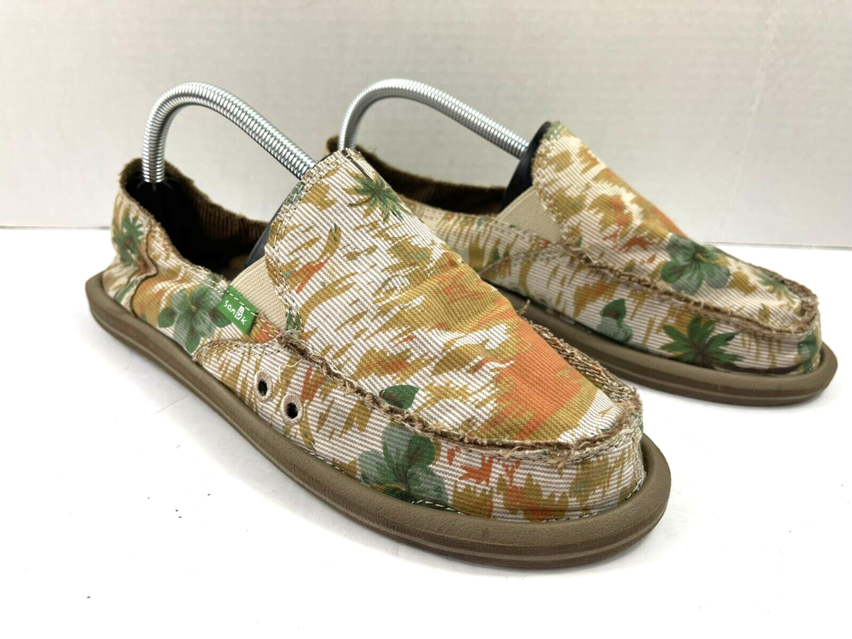 - Sanuk Loafer Women 9M Donna Sidewalk Surfer Shoes Brown Canvas Beach Palm Hawaii