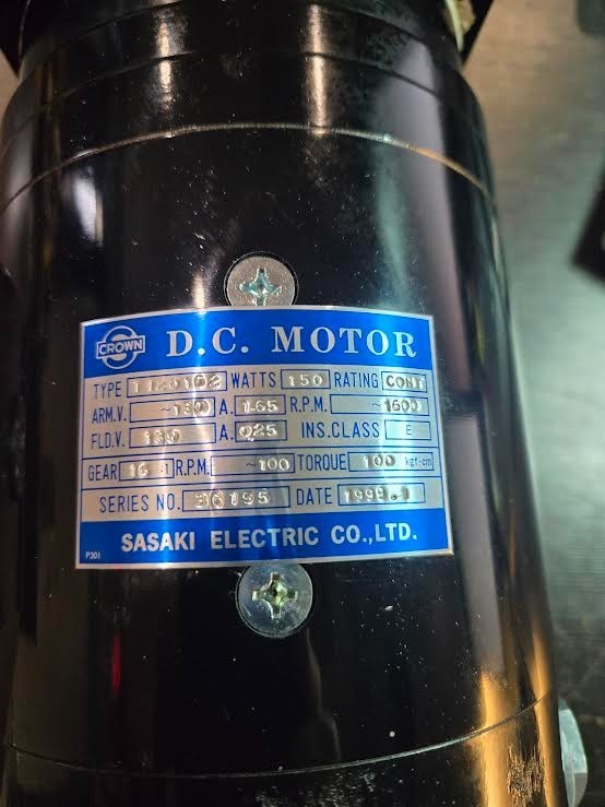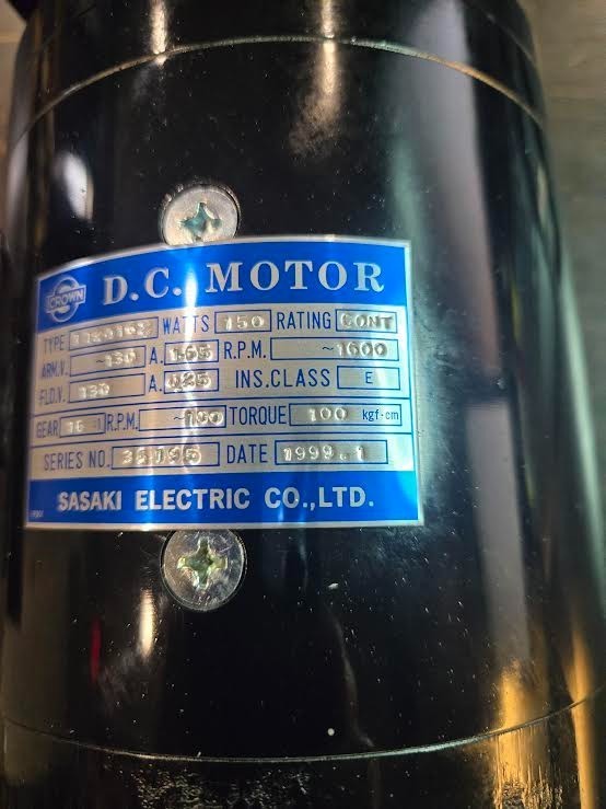- Sasaki Electric T120162 Crown D.C. Motor 1600RPM Gear 16:1 150 WATTS NEW $699