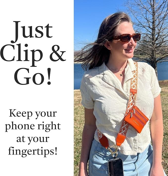 CHIC AND COMFORTABLE: THE CLIP AND GO STRAP YOU?LL LOVE! ? Its adjustable strap allows you to customize the fit, ranging from 40" to 61" long and 1.5" wide, making it a versatile accessory for any outfit. With a removable wristlet and a detachable pouch of 4.5"x3.5", you can easily organize your essentials. Whether you?re dressing up or keeping it casual, this cell phone crossbody bag adapts to your look effortlessly!