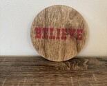 This beautifully crafted wooden plaque from Savvy Creations features the word "BELIEVE" in bold red letters, perfect for adding a rustic and inspirational touch to your seasonal decor.