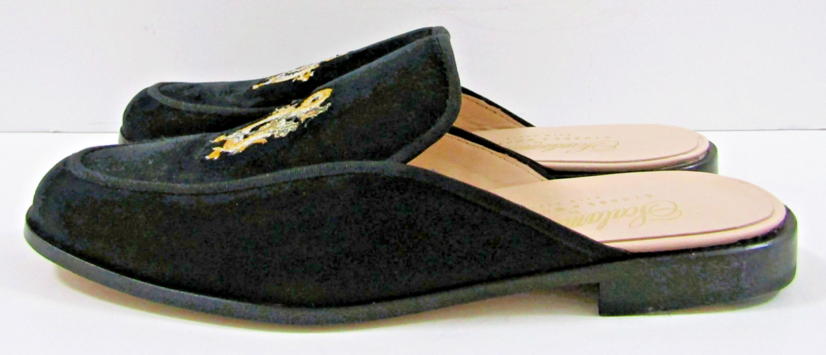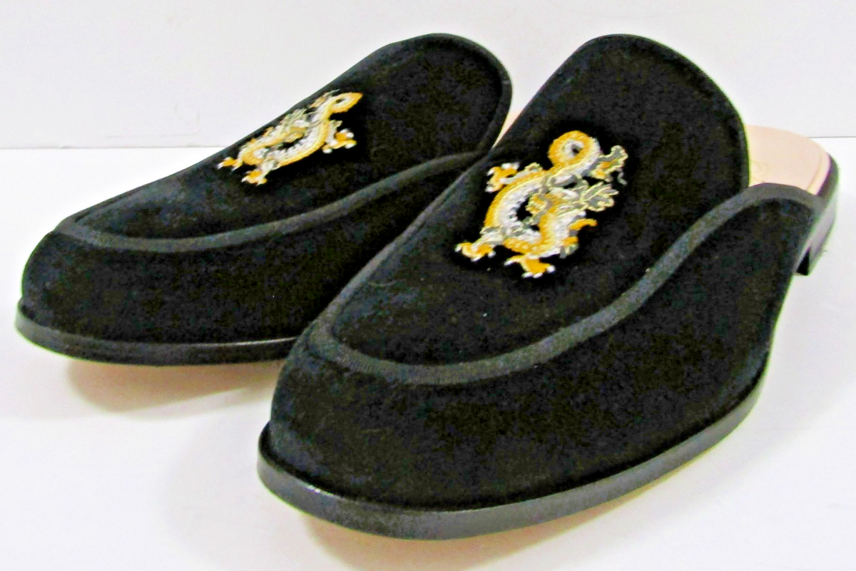 Scalalmandre by Stubbs Wootton Palm Beach Dragon Black Velvet Slippers 11.5