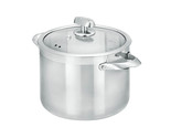 Cooking with stainless steel is made even easier with SCANPAN's premium CLAD 5 range of cookware. The exclusive 5 layer construction ensures an even heat distribution and for those demanding only the best in stainless steel, this range will enhance all culinary pursuits. Induction compatible, this 24cm/7.6L stockpot is beautiful to cook with. With class leading, 3.5mm 5 layer construction, the Clad 5 range features cast stainless steel handles and knobs, 5mm domed tempered glass lid with steam release and stainless steel trim.