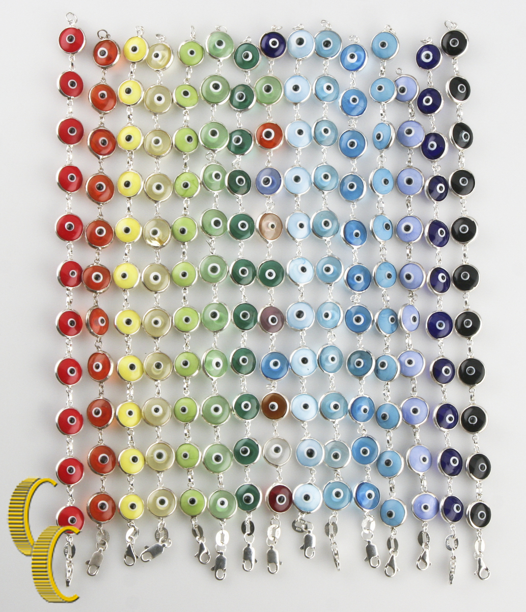 Wunderschones Sterling Silber "Evil Eye" Armband mit Hummerverschluss verschiedener Farben 7 "