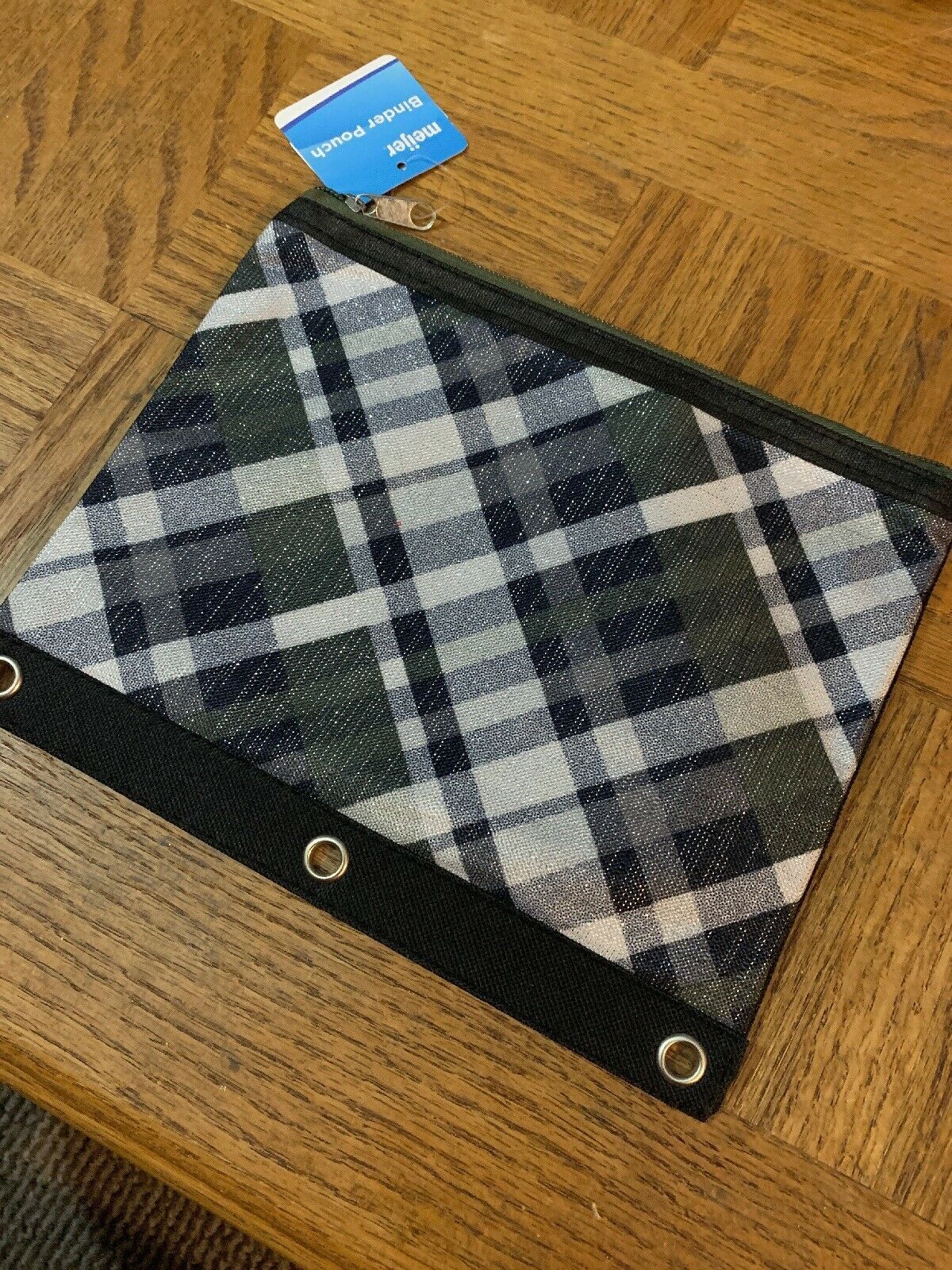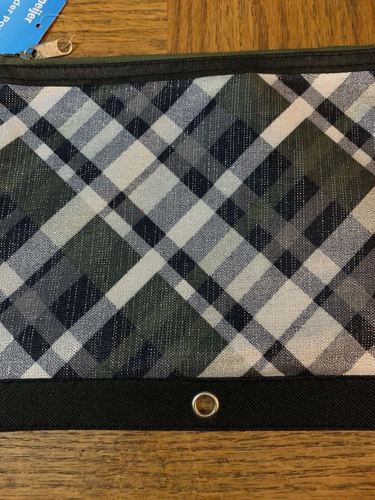 School Pencil Pouch Plaid Green/Black/White
