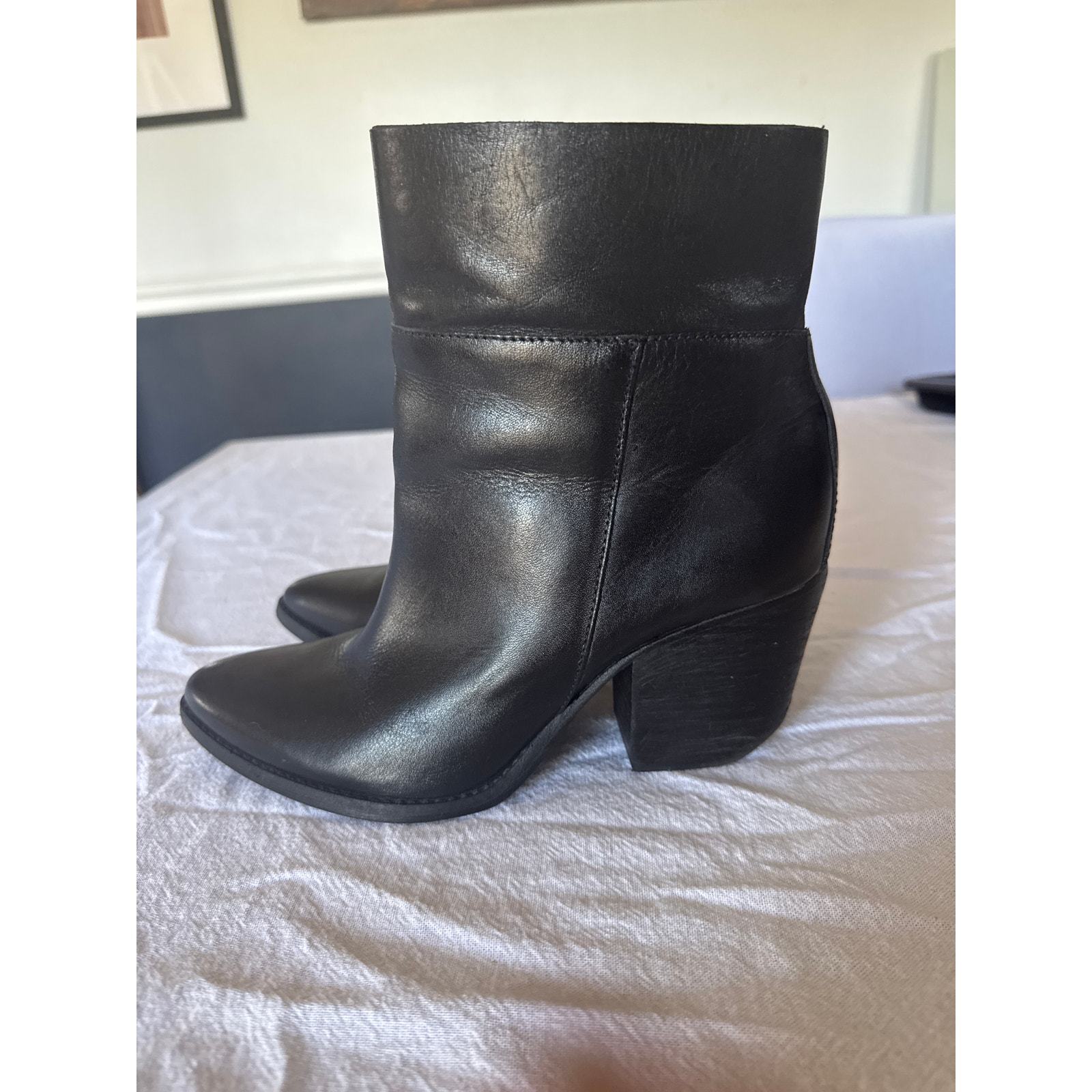 - Schutz Women’s Black Leather Ankle Boots Block Heel Pointed Toe Size 7