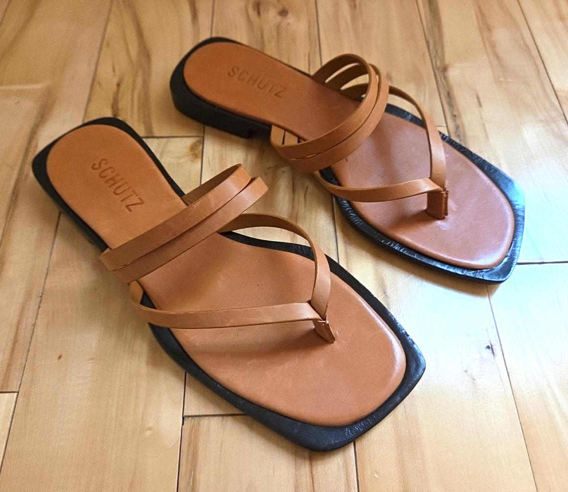 - Schutz Womens Rania Strappy Flip Flop Sandals Cuoio Brown Leather Size 6.5M New