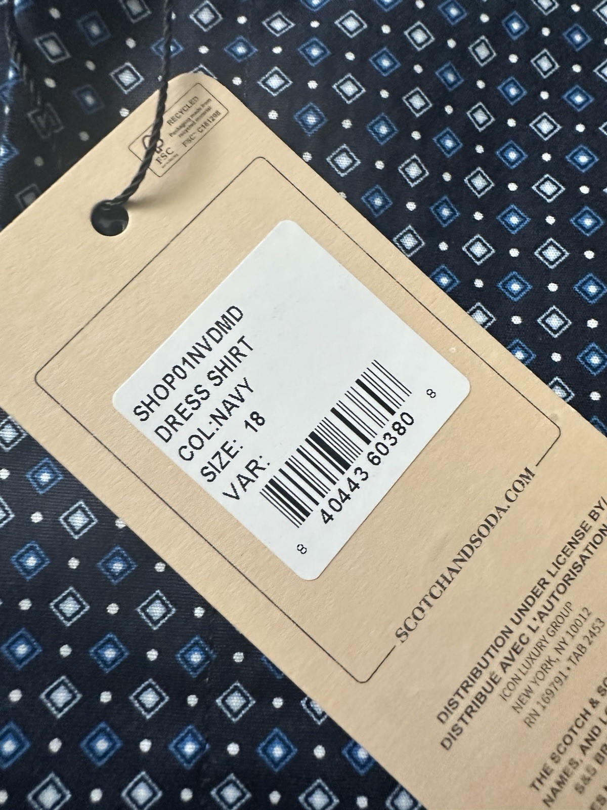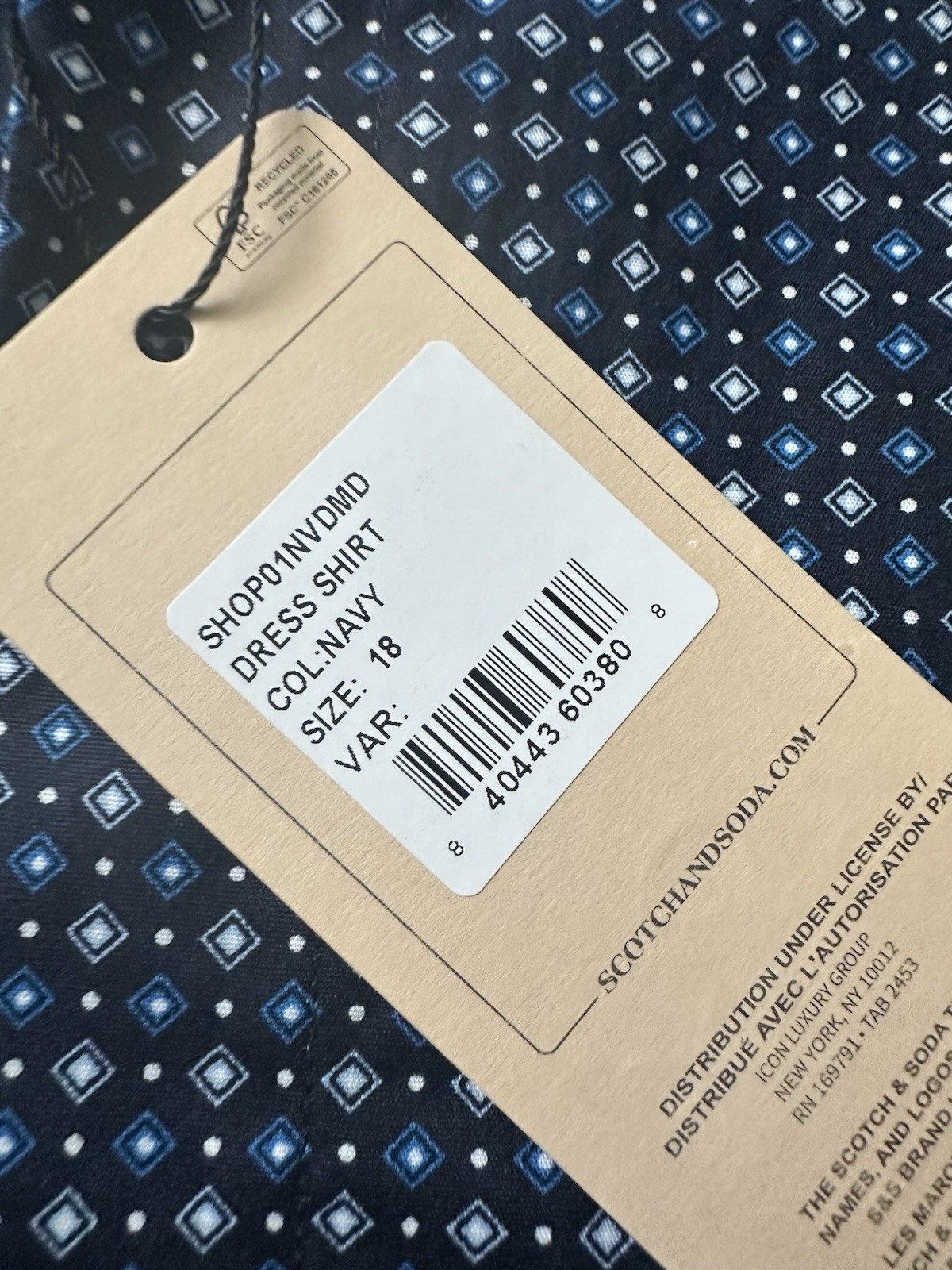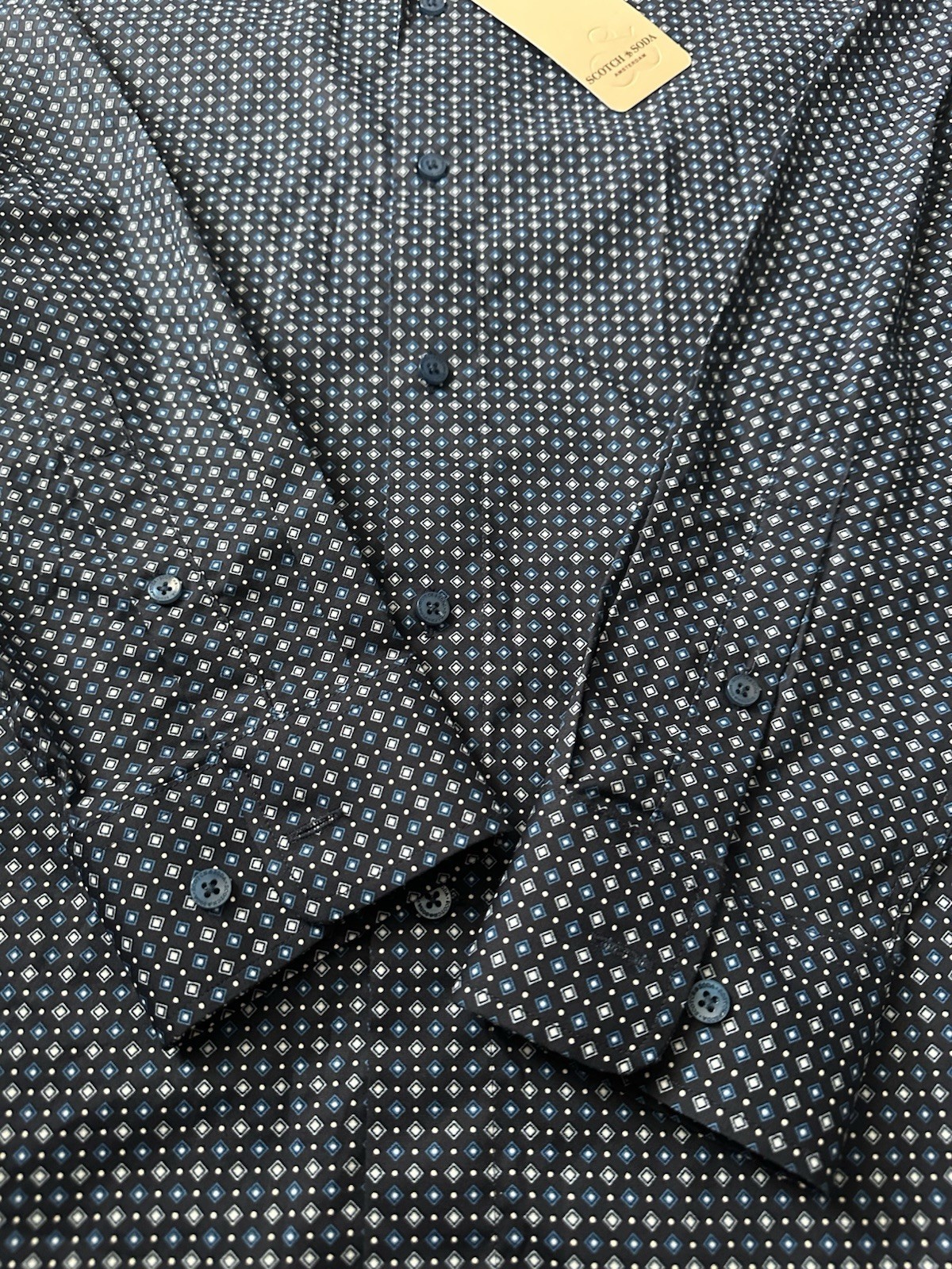 - Scotch & Soda Amsterdams Mens Diamond Long Sleeve Button up Dress Shirt 18/46