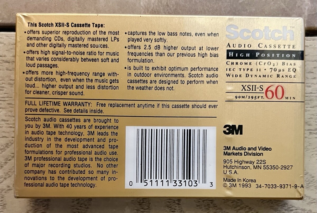 - SCOTCH XS IIS 60 1993 EUROPE TYPE II BLANK CASSETTE TAPE (1) (SEALED)